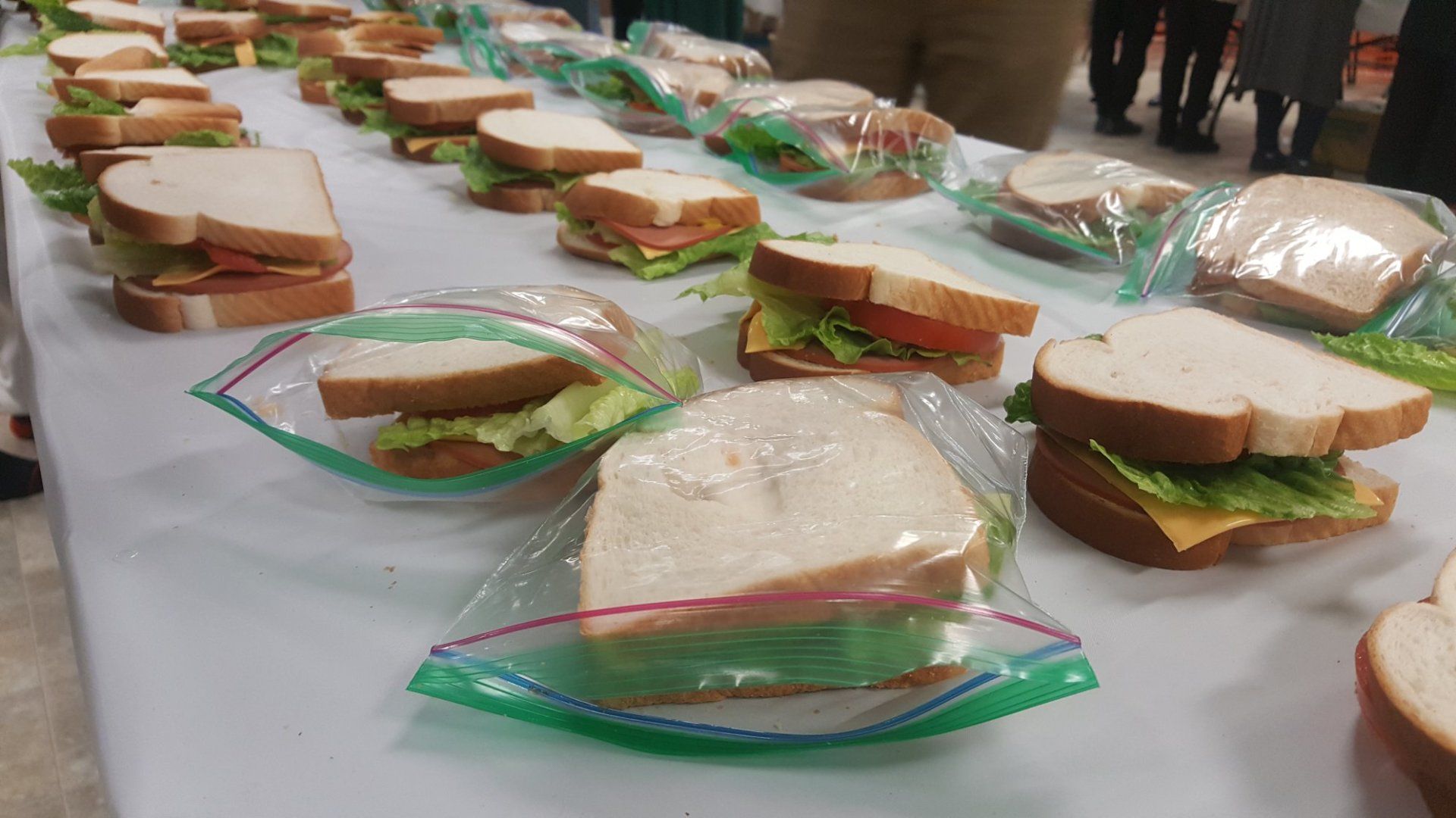 Each lunch costs about $2.75 and typically includes: a sandwich, granola bar, chips, fresh fruit, and a water bottle.